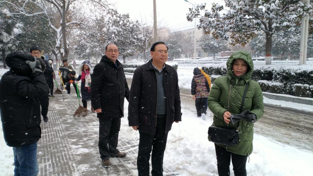 一场十年不遇的暴雪袭击漯河,给市民的出行带来不便,而且极易引起交通事故。建筑工程系连夜布置任务,选派精兵强将组织志愿者队伍,准备工具,冒雪对长江路从学校北门到太行山路口路段进行了集中清理。学院书记顾文明现场指导,建工系主任赵冬梅、办公室主任林果等领导身先士卒,全体志愿队发扬不怕苦不怕累的奉献精神,圆满完成清雪任务。